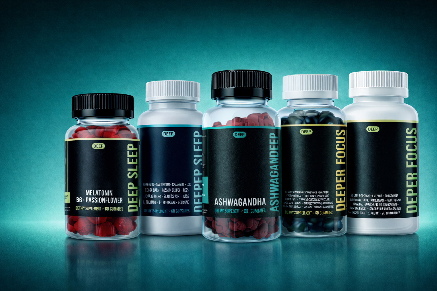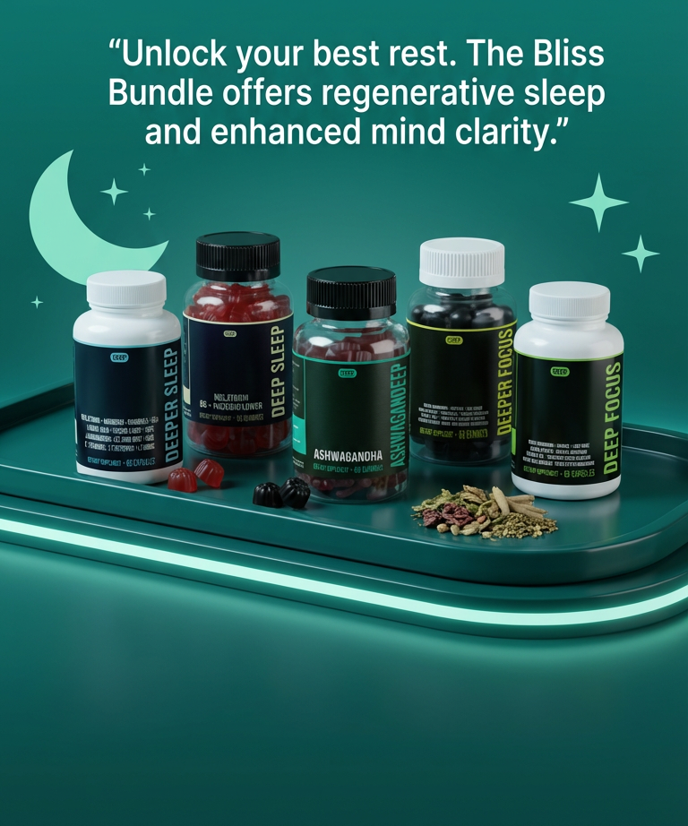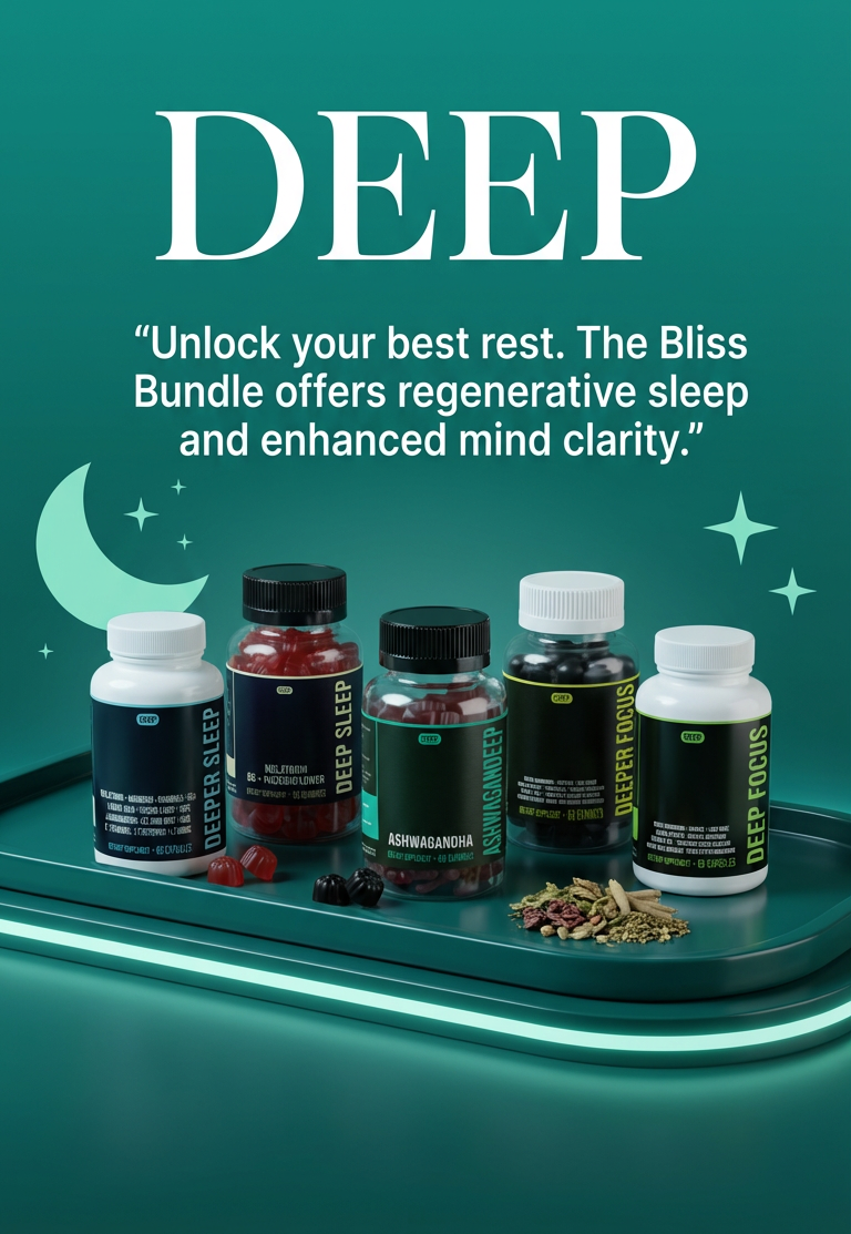 Deep Supplements are formulated to optimize your natural sleep architecture — supporting melatonin production, calming the nervous system, and enhancing restorative REM and deep sleep cycles. No harsh sedatives. No groggy mornings. Just real, biological recovery.